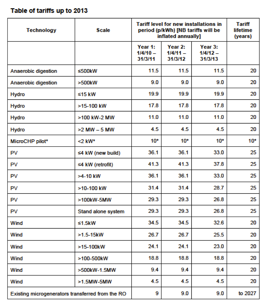 The UK Government introduced feed-in tariffs to encourage the installation of renewable energy systems
